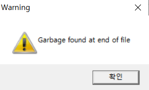 그런데 파일 끝에 쓰레기 값이 있다고 경고창이 뜬다 ..!