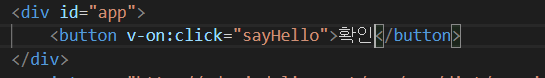 v-on:click="sayHello" 는 사용자가 해당 버튼을 클릭했을 때 sayHello메소드가 실행(호출)된다는 뜻이다.