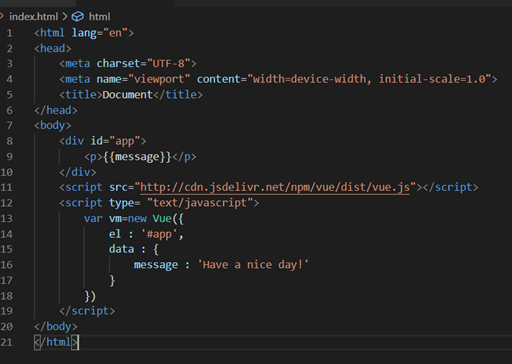다른 코드들이 body 태그 밑에 있더라도 위의 뷰 인스턴스는 오직 id가 app인 div element에만 영향을 준다는 점을 기억하자!