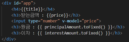 <h3>이자 : {{ interestAmount.toFixed() }}</h3>