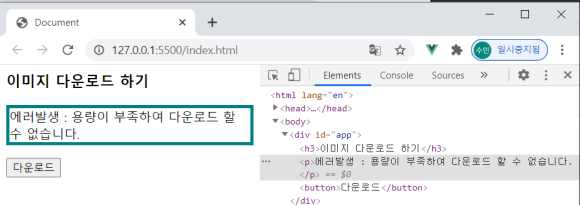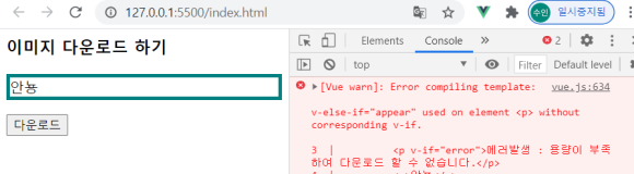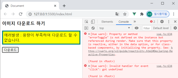 <div v-if="error">에러발생 : 용량이 부족하여 다운로드 할 수 없습니다.</div>