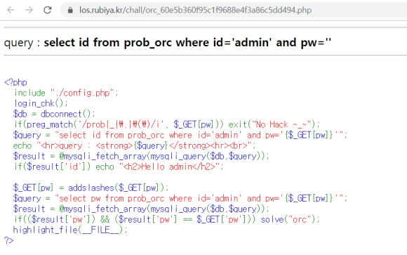 Lord of SQL Injection#4 orc | Blind SQL Injection 본문