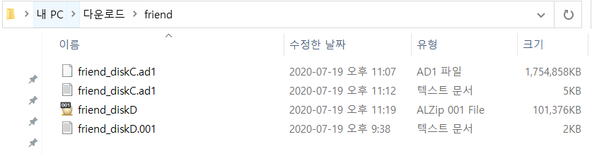 압축을 푼 파일에 있는 ad1 파일이 눈에 띈다