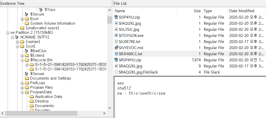 partition2를 뒤적거렸다. 그러다 쓰레기통에서 pw에 대한 txt파일이 보였다.