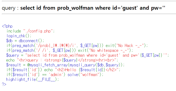 Lord of SQL Injection#5 wolfman | White Space filtering 본문