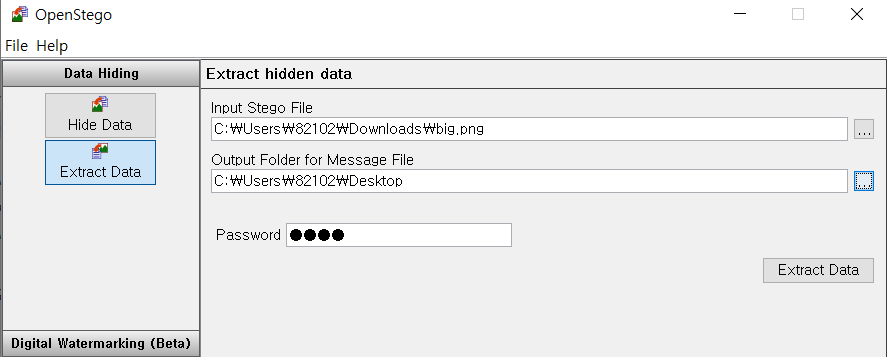 stego file로 big.png파일 선택해 바탕화면에 추출해보기로 했다.