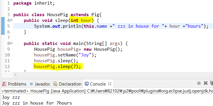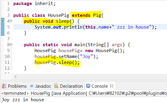 => 호출시 HousePig 클래스의 sleep 메소드가 호출됨