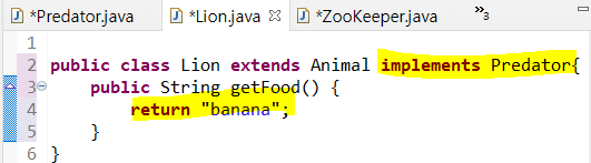 Lion은 "banana"를, Tiger은 "apple"을 리턴하도록 하였다.