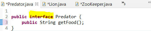 이때, 추가한 getFood 메소드는 이름과 입출력에 대한 정의만 하고 그 내용은 적지 않는다 !!