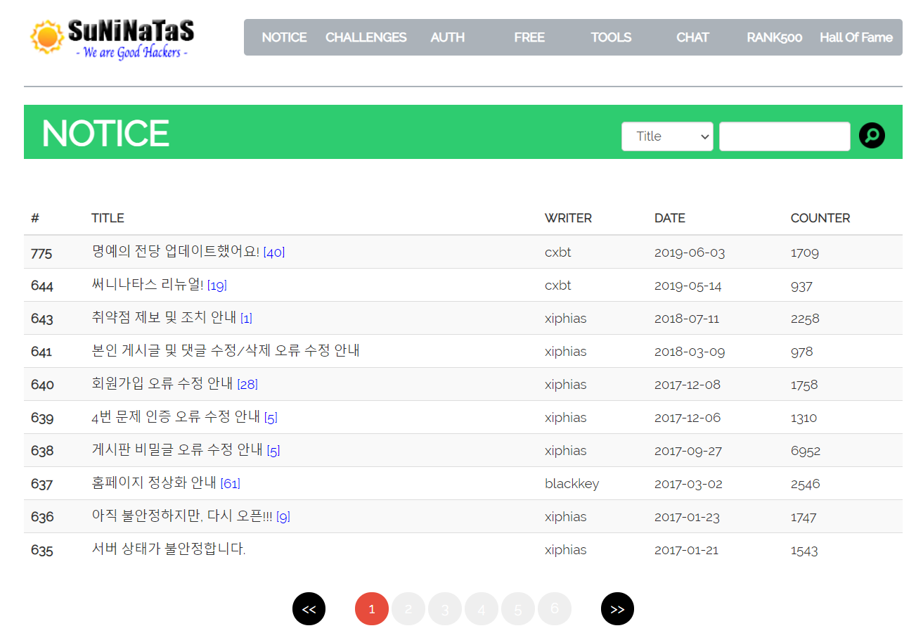 다시 원래 메인으로 들어가서 여기저기 뒤적거리고, 위에 Notice 외의 다른 탭들도 뒤적거리다가