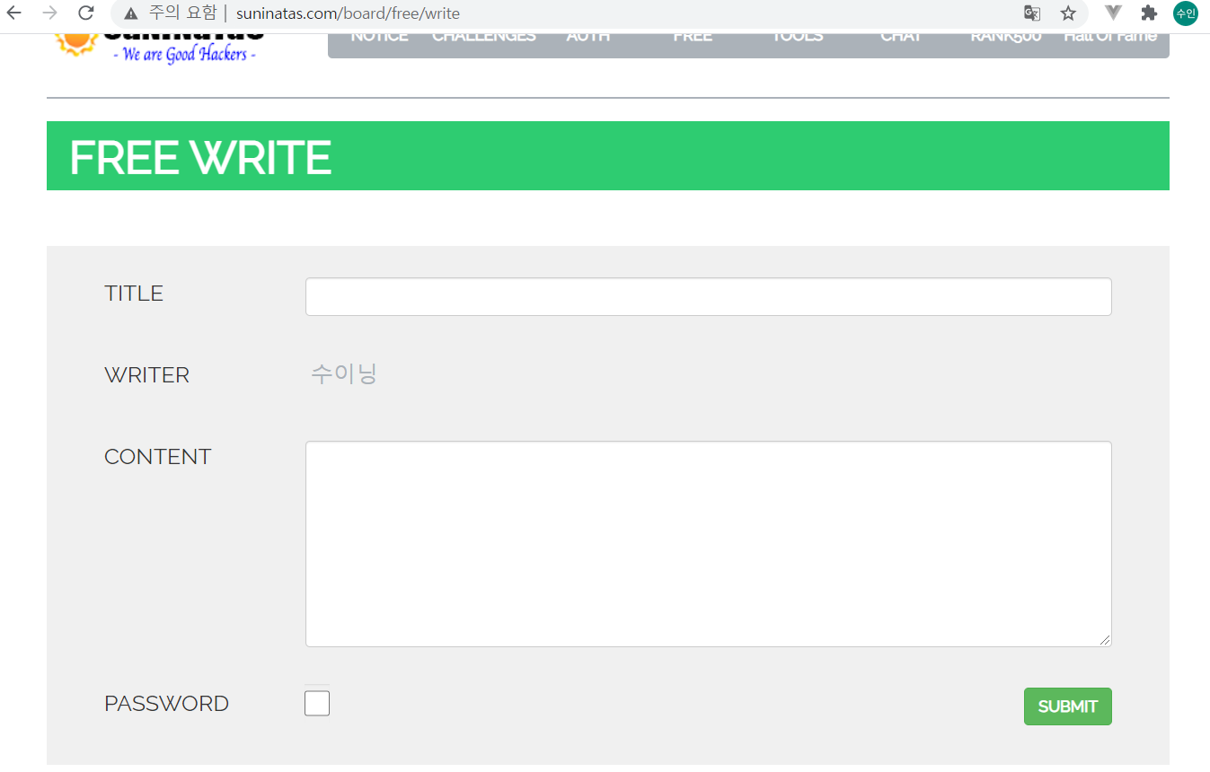 위의 주소를 보니 suninatas.com/board/free/write 이와 같았다.