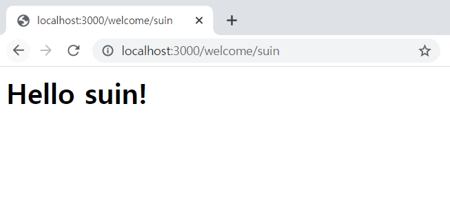 2. http://localhost:3000/welcome?nameQuery=suin 접속 시
