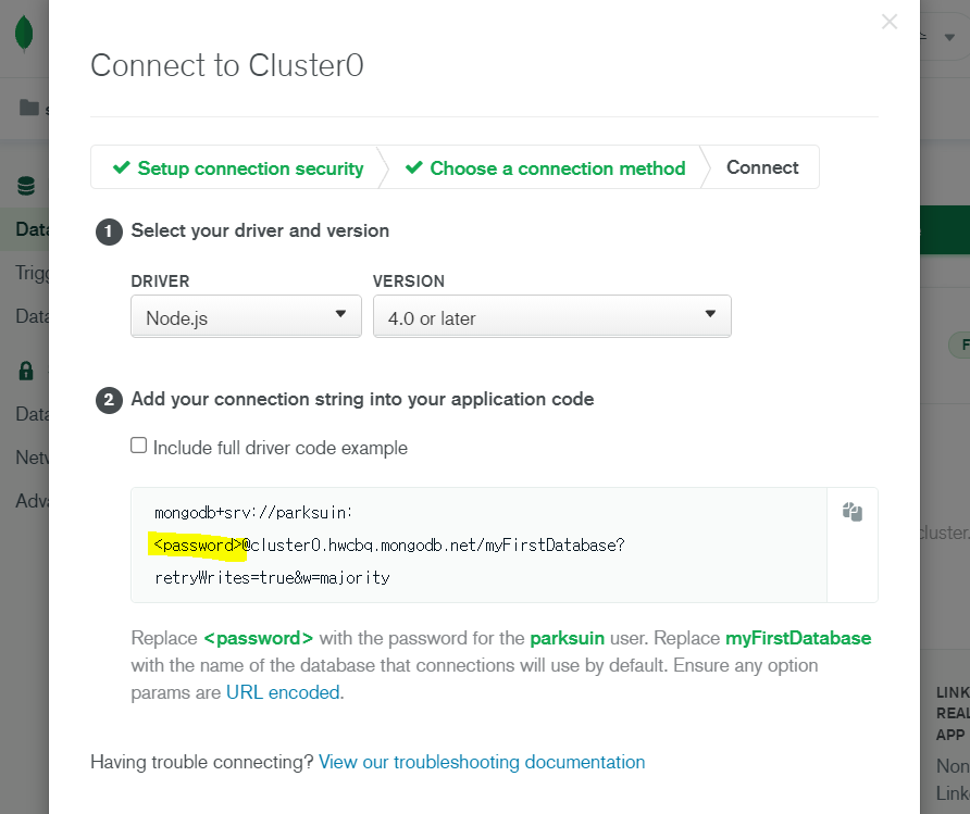 DB에 접속할 수 있는 방법으로 connect your application을 이용했다.