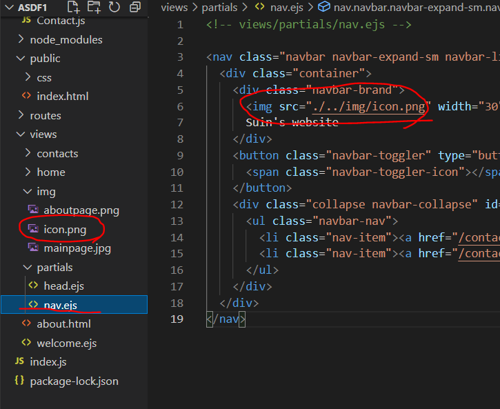 nav.ejs에서 img src를 수정하고나서